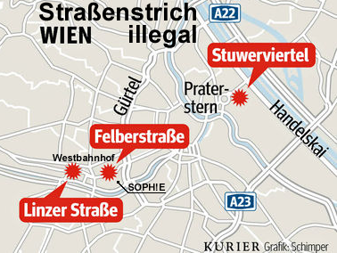 Noch einmal zurück zu den Schutzzonen: Voriges Jahr war ein Versuch der Stadt Wien gescheitert, den Straßenstrich in zwei Zonen (ein Abschnitt der Linken Wienzeile, ein Abschnitt hinter dem technischen Museum) zu verlagern. Die Frauen blieben an ihren gewohnten Standplätzen, da sie etwa auf die Nähe von Zehn-Euro-Hotels angewiesen sind.