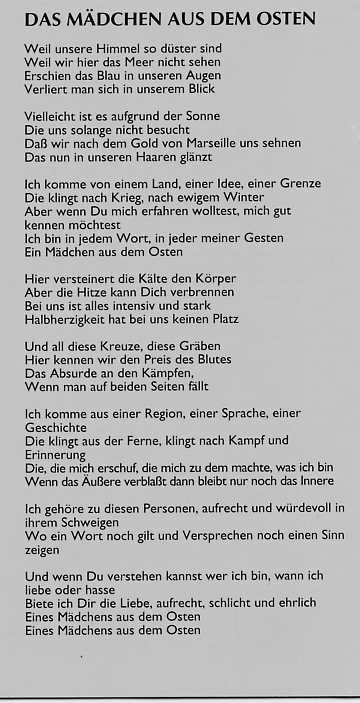 Danke Marc, dass du den Songtext von Patricia Kaas: "Une fille de l'Est" gegenübergestellt hast.